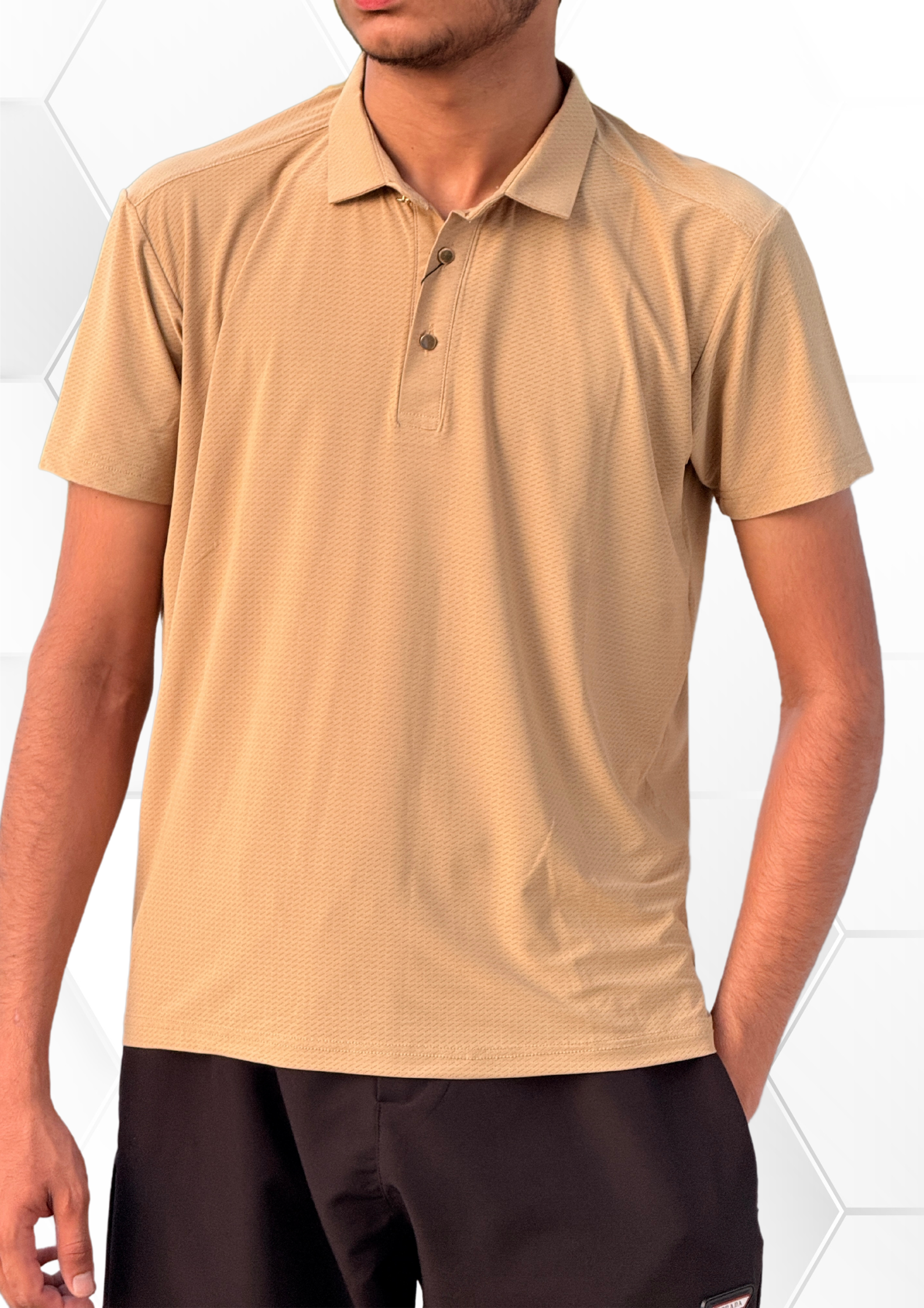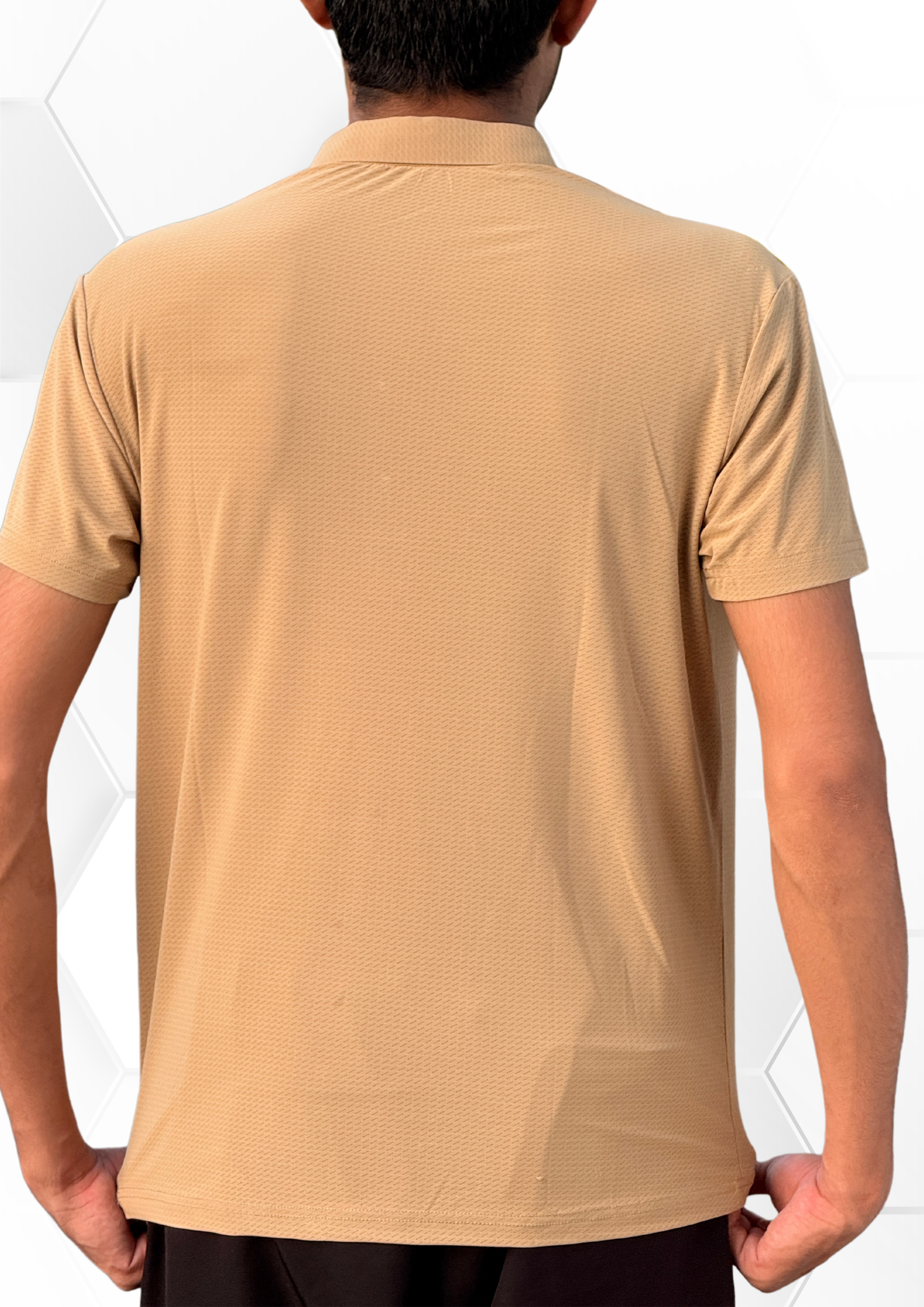 Texture: The fabric has a micro piqué structure — a tightly woven, small, waffle-like pattern that enhances airflow and texture.